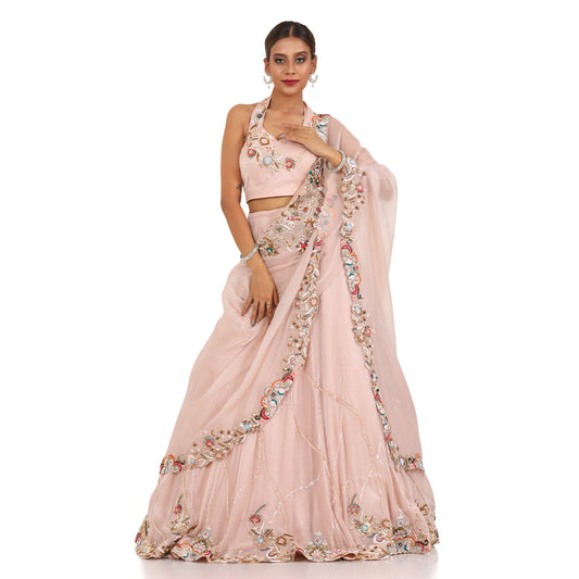 Pastel Pink Drape Lehenga
