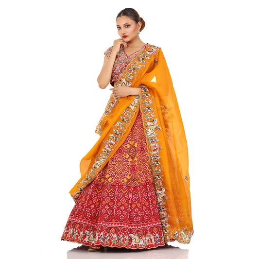 Red Orange Patola Lehenga