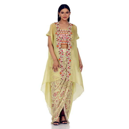 Printed Drape Skirt With Cape