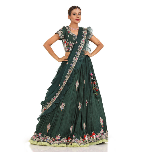 Bottle Green Mushroom Lehenga