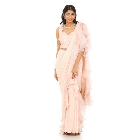 Peach Drape Saree